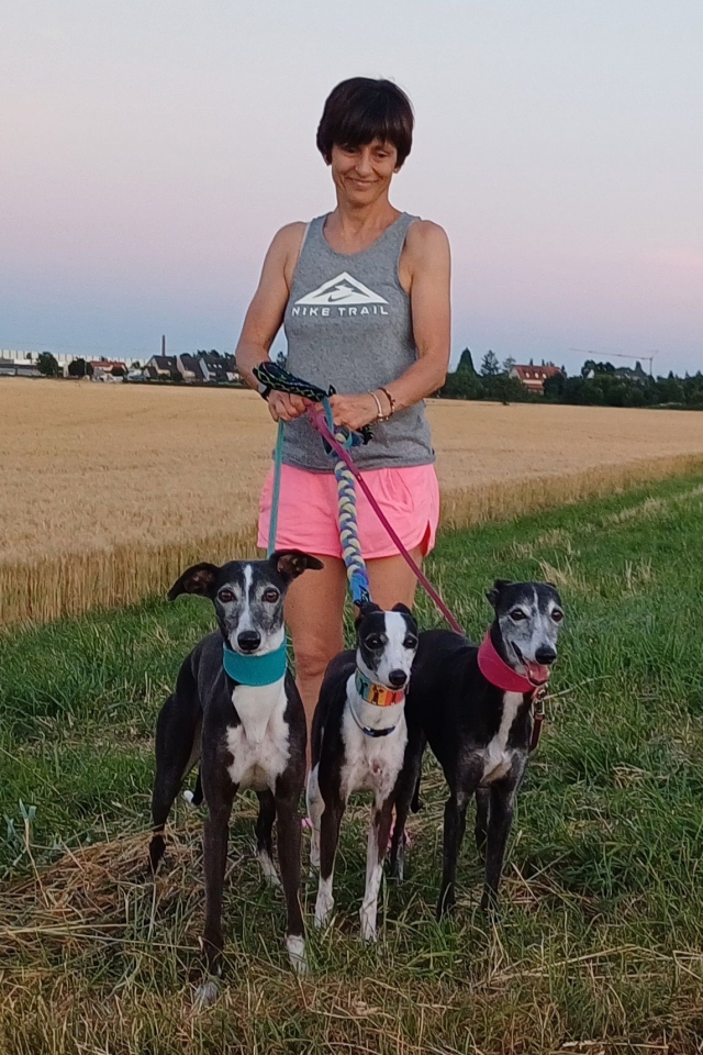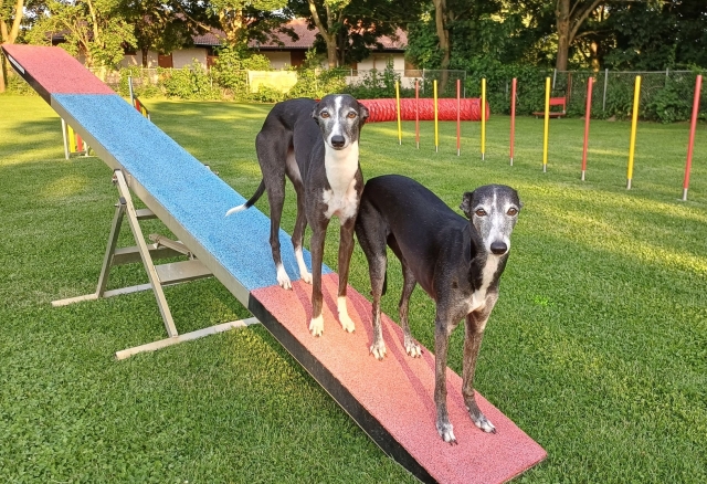gefreut, Lisa und Sdinsi endlich einmal wiederzusehen! --------------------------------------------------------------------------------------------------------------![]() v.l.n.r. Emma, Sdinsi, Ecsy ----------------------------------------------------------------------------------------------------- 26.06.2025 Gassigehen nach dem Agilitytraining, meine Mädels haben bei der Auswahl ihrer Begleiter doch einen ausgezeichneten Geschmack, oder? ![]() ----------------------------------------------------------------------------------------------------- 16.06.2025 Agility macht im Team einfach mehr Spaß :) ![]() ----------------------------------------------------------------------------------------------------- 09.06.2025 Pfingsttraining in Neulussheim, da ich mich selbst immer schlecht knipsen kann, wenn ich laufe, gibt es nur ein paar Momentaufnahmen von den Mädels ![]() ![]() | ||