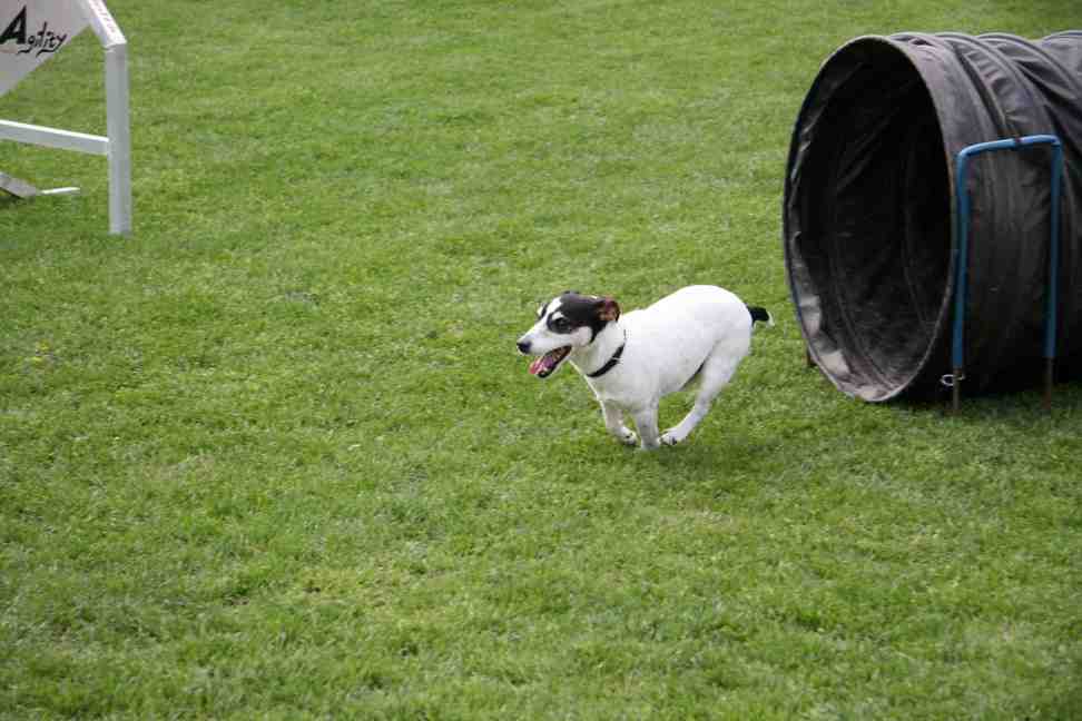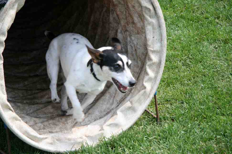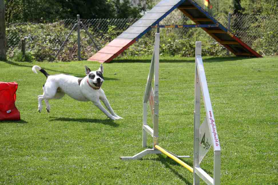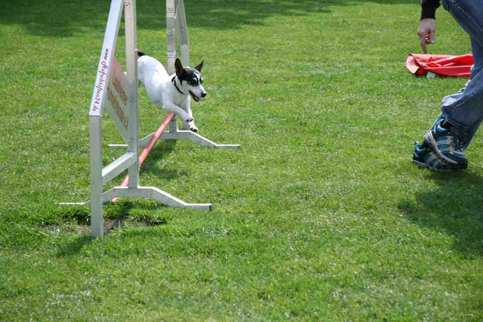ein paar Sprünge (mit Stangen auf dem Boden) oder einen Tunnel sehen...